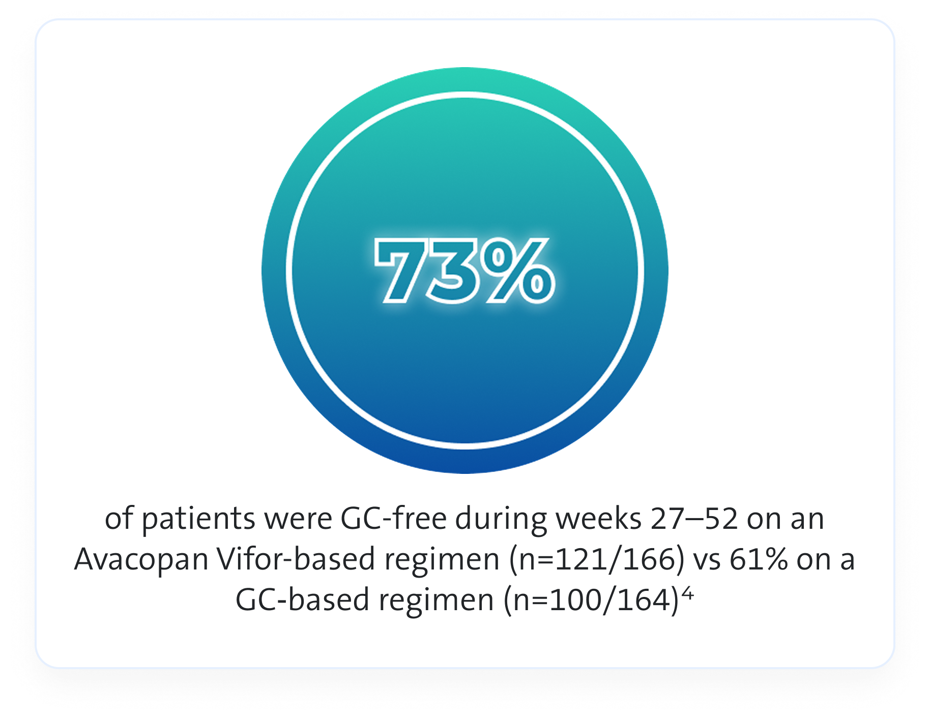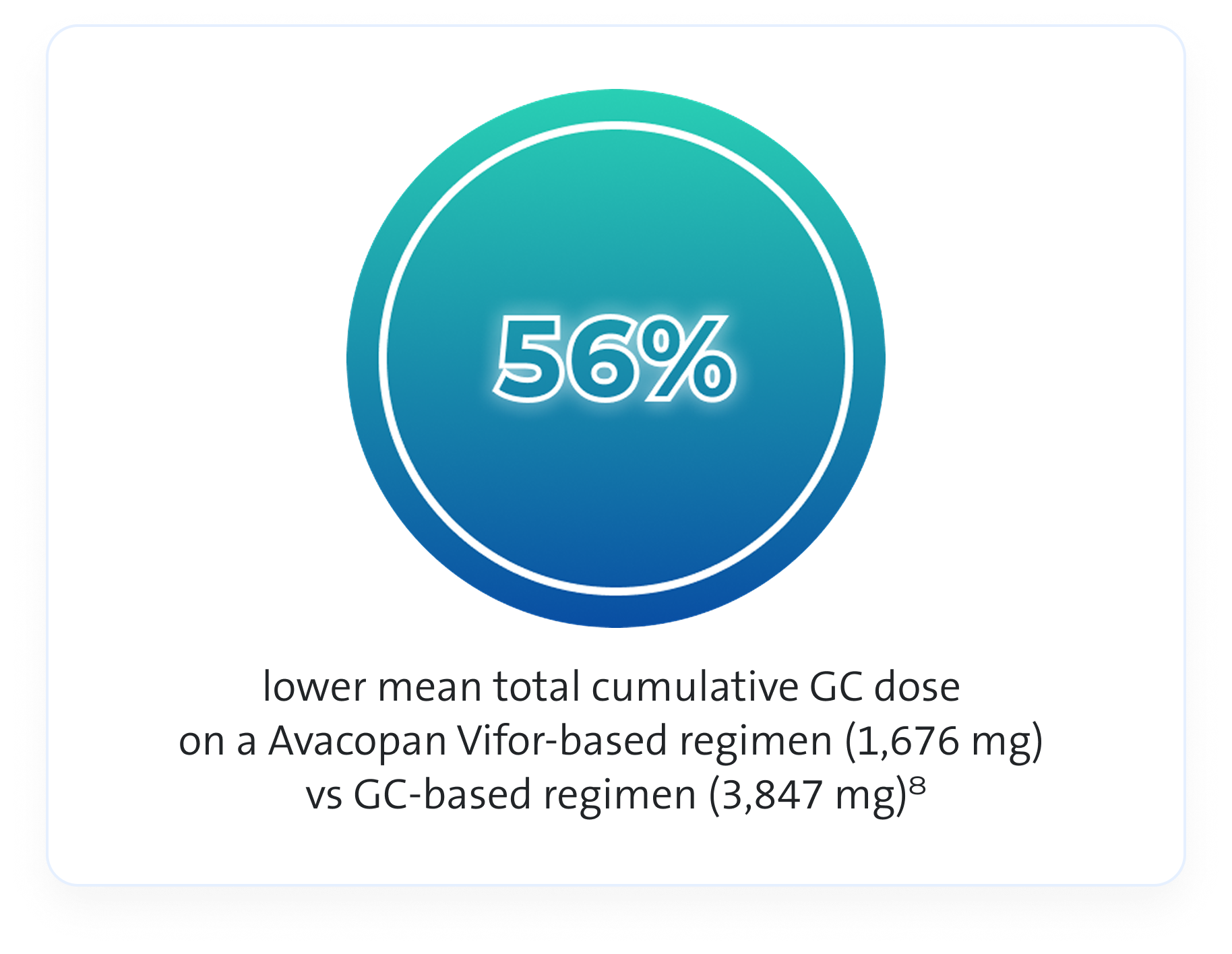 In the ADVOCATE trial an Avacopan Vifor-based regimen allowed physicians to use less GCs compared to GC-based regimen1,4,8