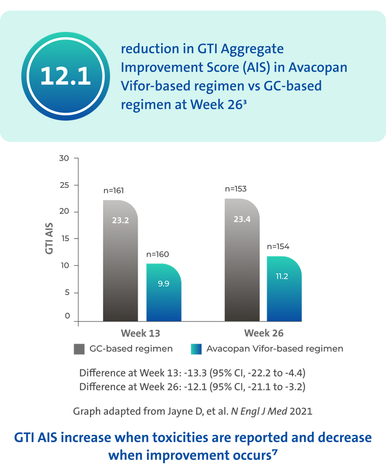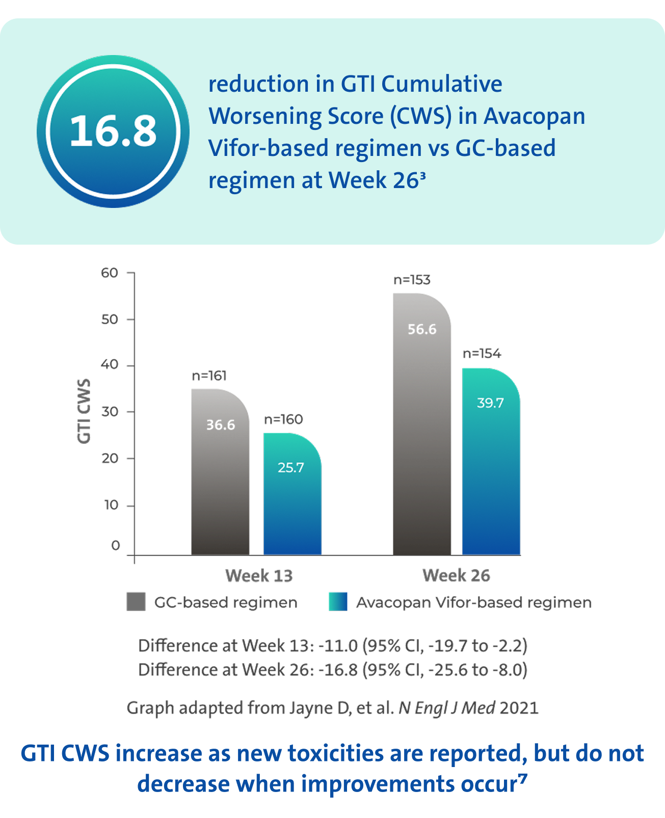 Avacopan Vifor-based regimen demonstrated a larger reduction in GC-toxicity vs a GC‑based regimen3