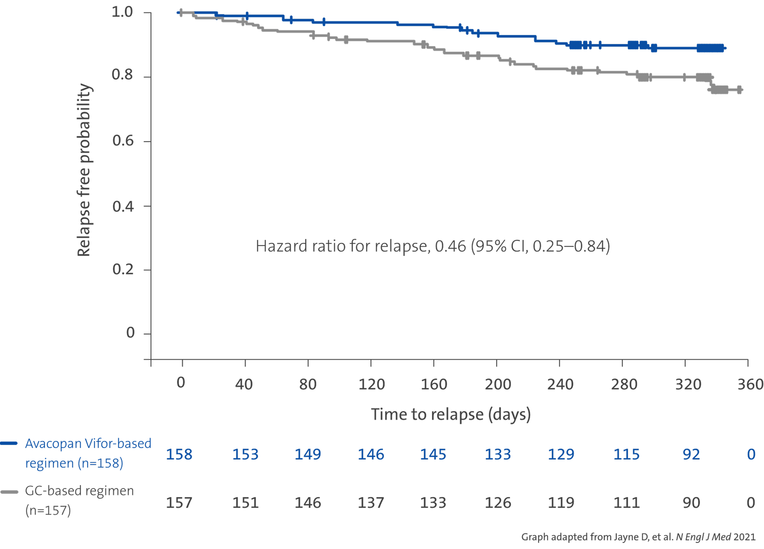 Avacopan Vifor based regimen resulted in a lower absolute risk of relapse vs a GC-based regimen over 52 weeks3
