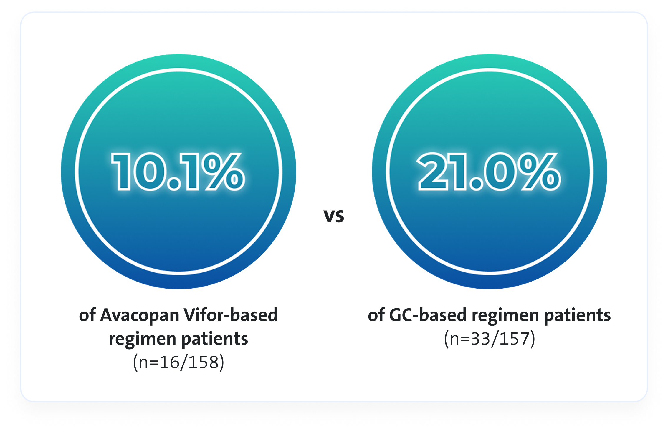 In ADVOCATE, the Avacopan Vifor-based regimen was associated with fewer AEs of any kind, serious AEs, deaths, infections and potentially GC-related AEs vs a GC-based regimen3