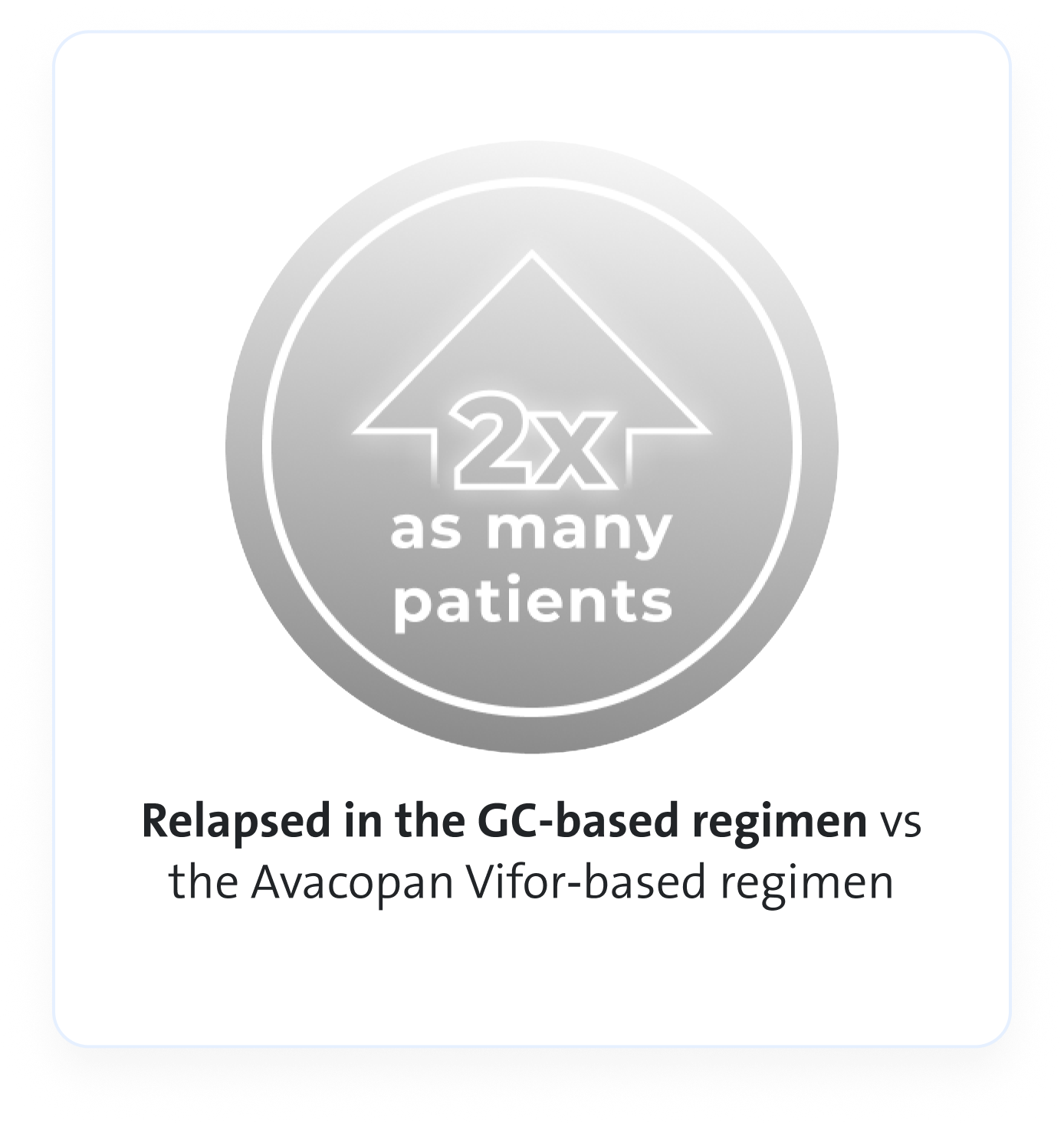 Avacopan Vifor-based regimen demonstrated a 54% relative risk reduction in relapse vs a GC-based regimen over 52 weeks3