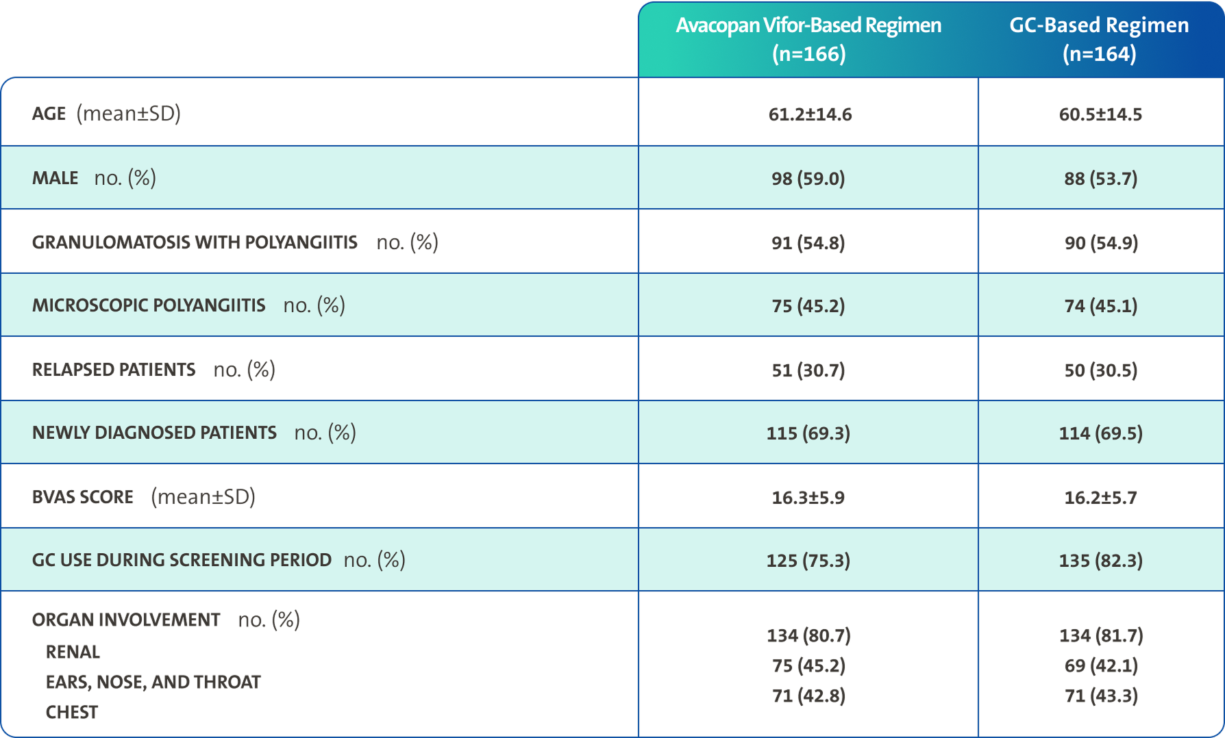Overall subject incidence of SAEs, including vasculitis, was 42.2% in the Avacopan Vifor-based regimen and 45.1% in the GC‑based regimen3
