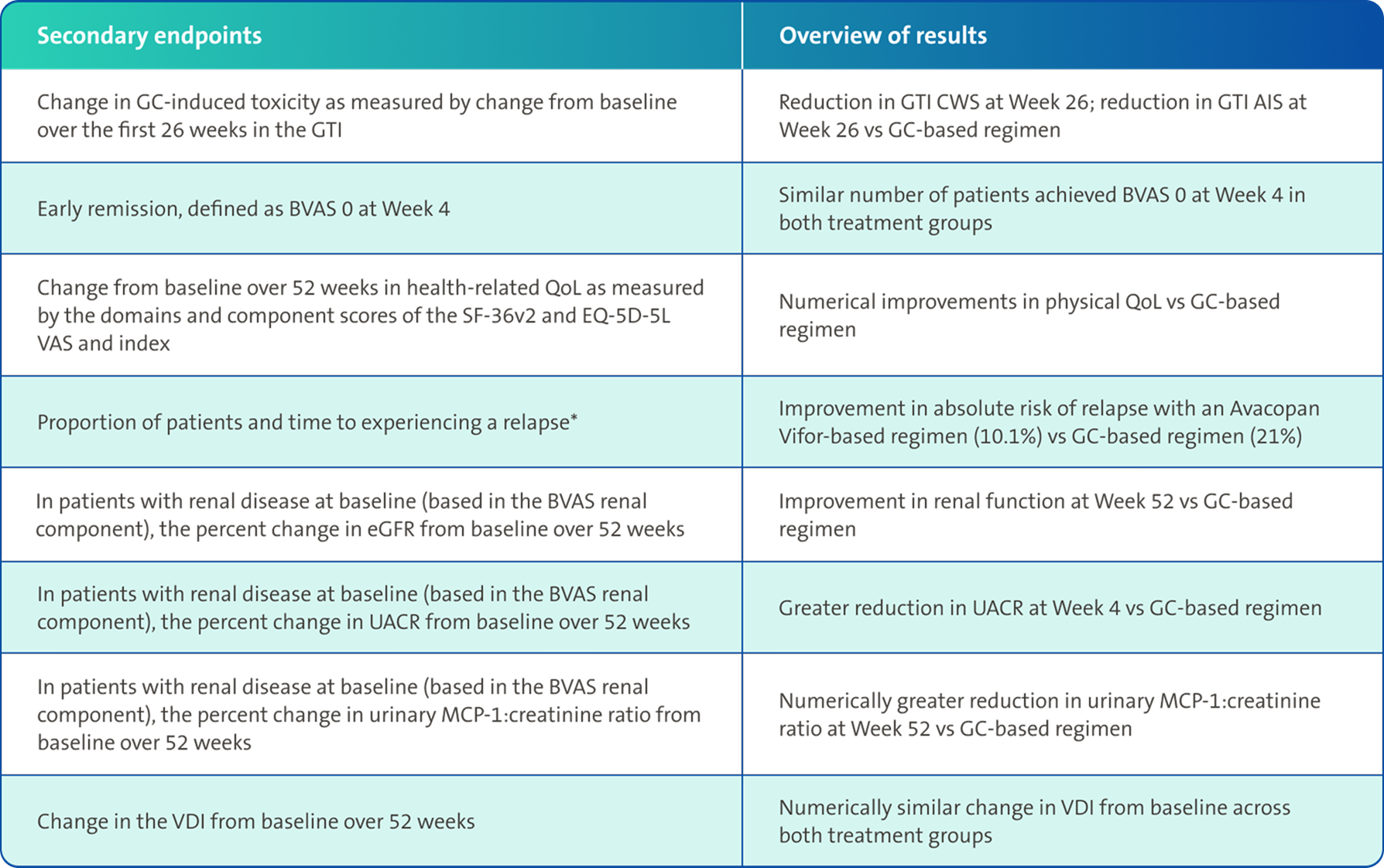 *Clinical remission in the ADVOCATE study was defined as BVAS 0 and no GC use in previous 4 weeks3