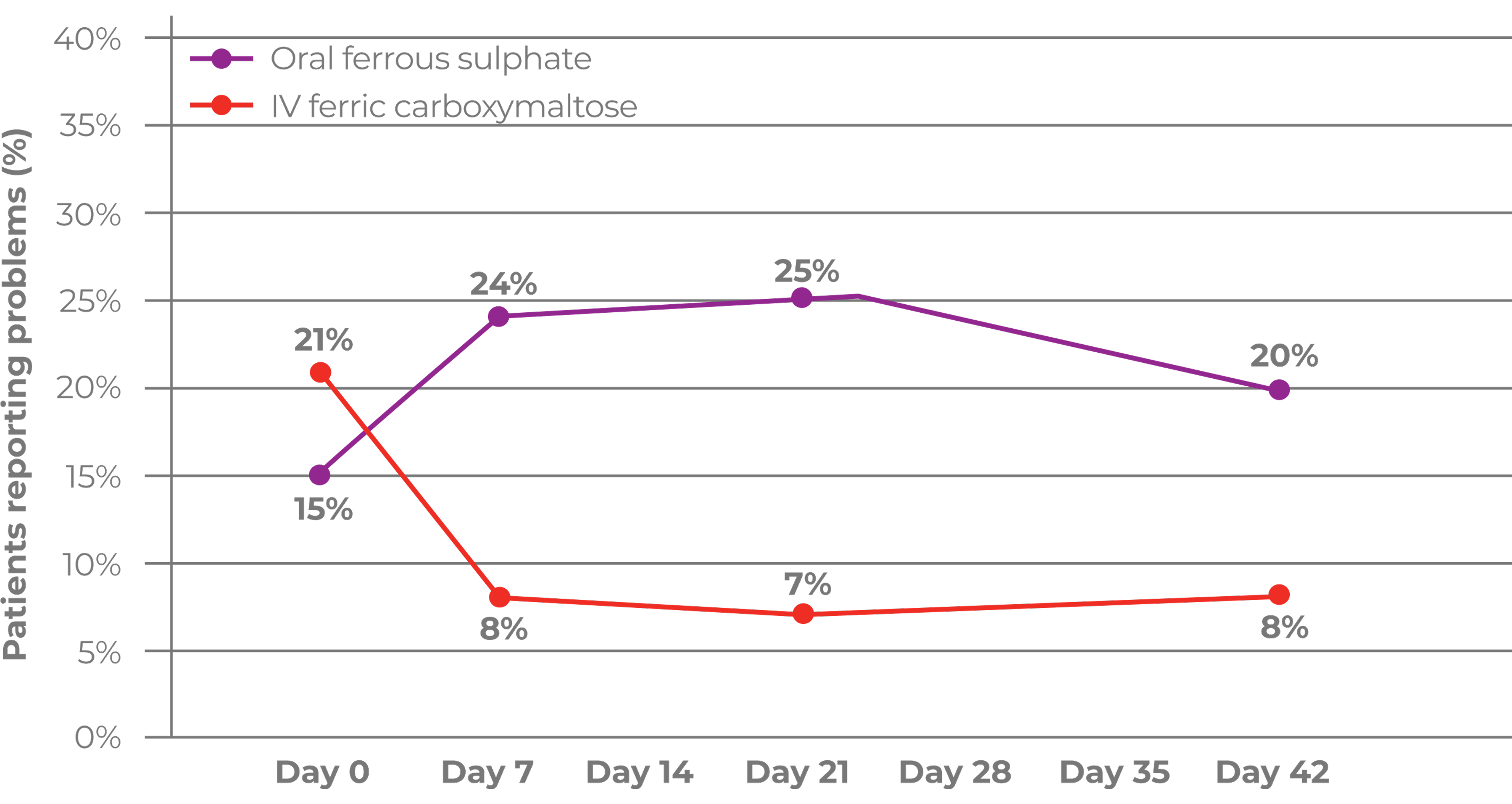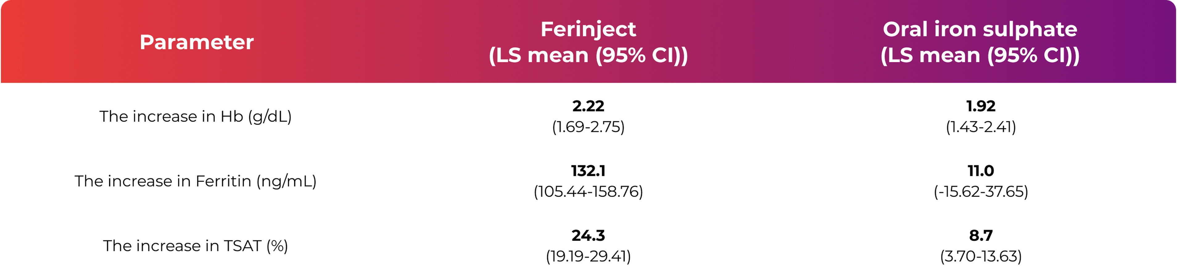 Compared with achieving ferritin levels of 100–200 mcg/L using oral ferrous sulphate.2