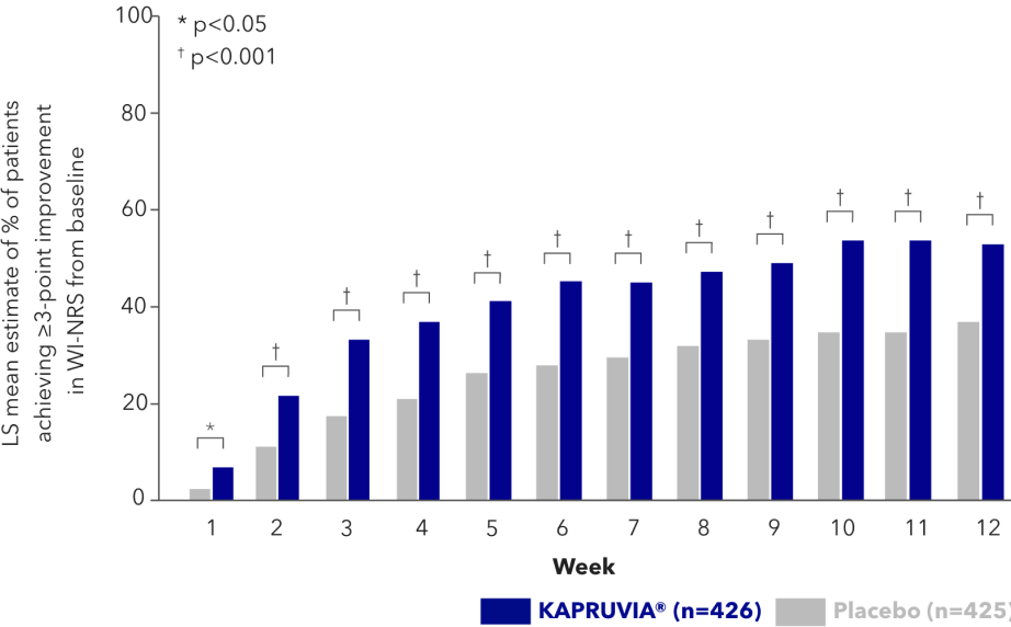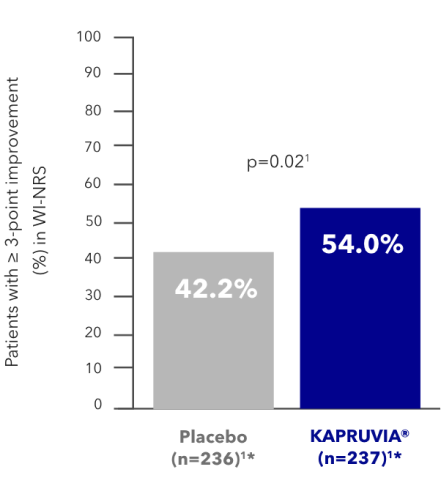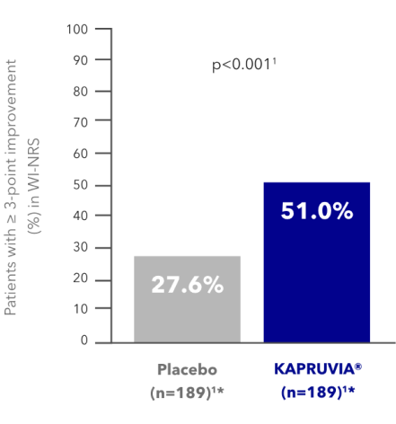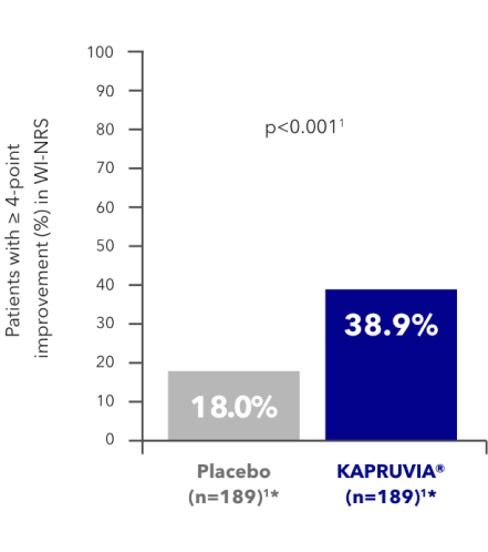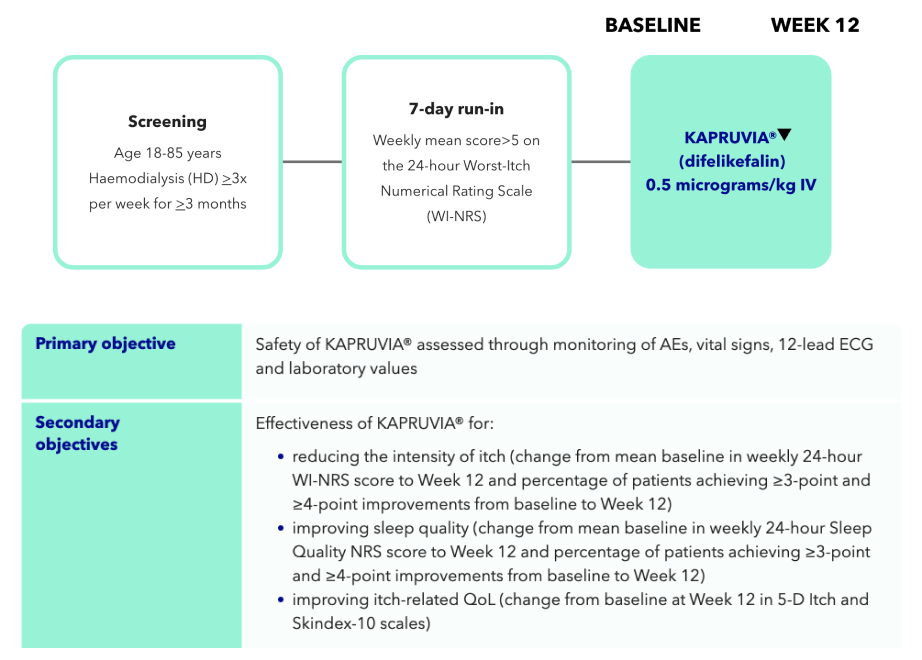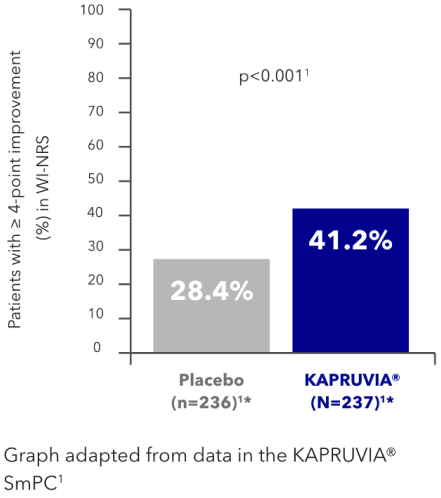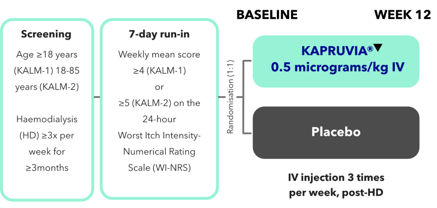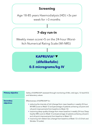 KAPRUVIA® is indicated for the treatment of moderate-to-severe pruritus associated with CKD in adult patients on haemodialysis. KAPRUVIA® should be restricted for in-centre haemodialysis use only.1